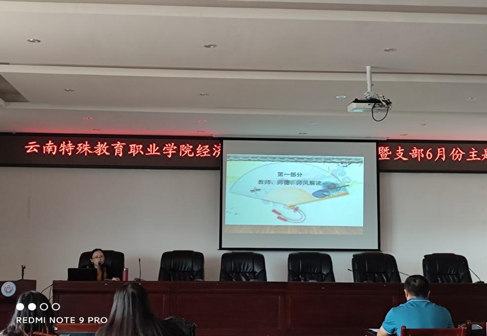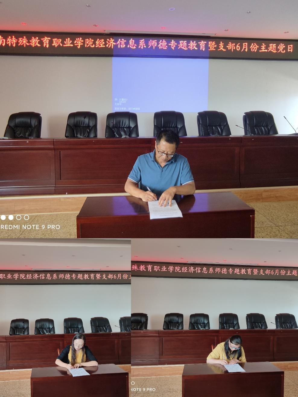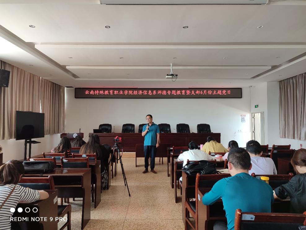 为全面贯彻党的指导方针,强化以党史学习教育为重点的“四史”学习教育,响应学院对教职工爱岗敬业、无私奉献的号召,提高我系教师政治素质和道德水平,调动我系教师教书育人的积极性,提高教学质量。根据《教育部关于在教育系统开展师德专题教育的通知》(教师函【2021】3 号)、《ac米兰官网中文网站师德专题教育工作实施方案》和《经济信息系师德专题教育工作实施方案》,经济信息系6月16日12:40在学院大会议室召开了师德专题教育暨支部6月份主题党日活动,全系教师参加了此次活动。