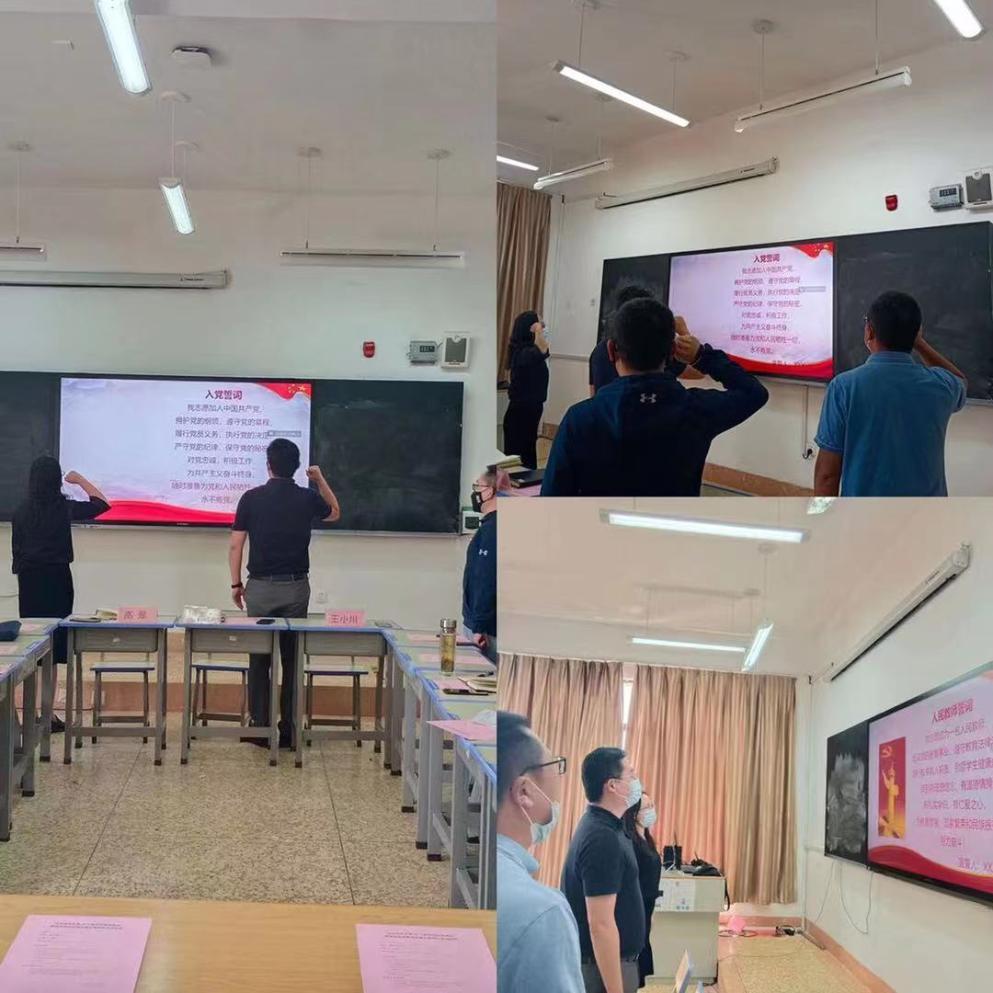 活动开始,支部书记高翠同志带领全体党员重温入党誓词。铿锵有力的誓言响彻会场,表达出特职院人永远跟党走的信念和信心,奋进新时代的意志和斗志。接着,支部副书记王小川同志带领全系教师重温教师誓词,全体教师精神抖擞,声音洪亮,展现了特职院教师的风采与担当。