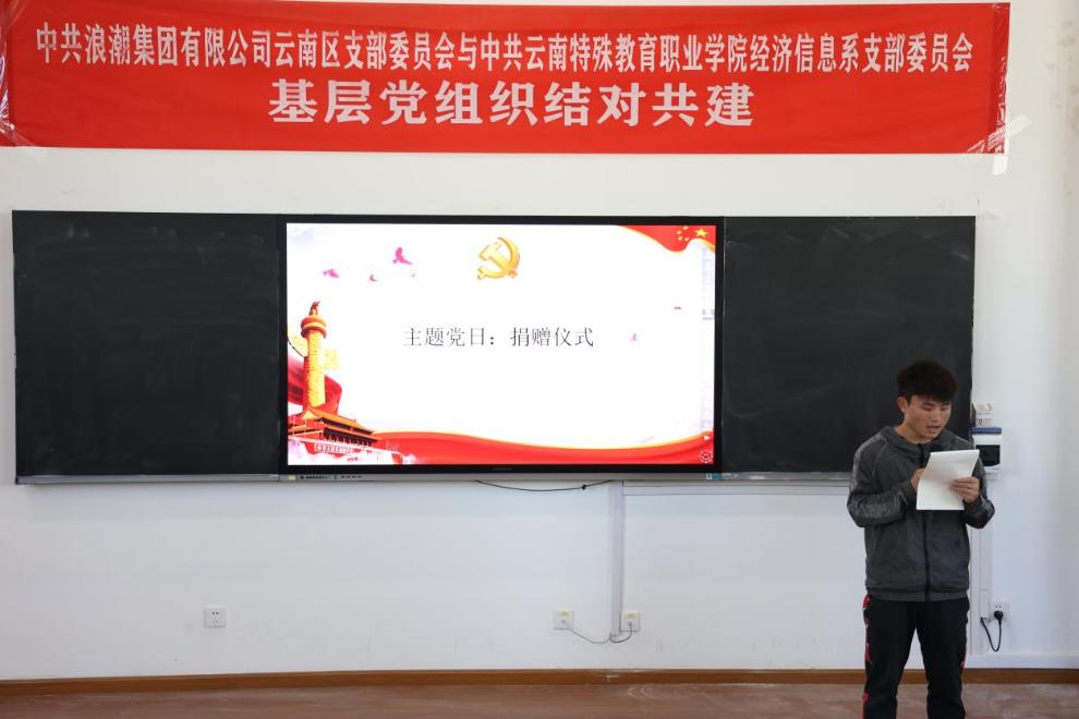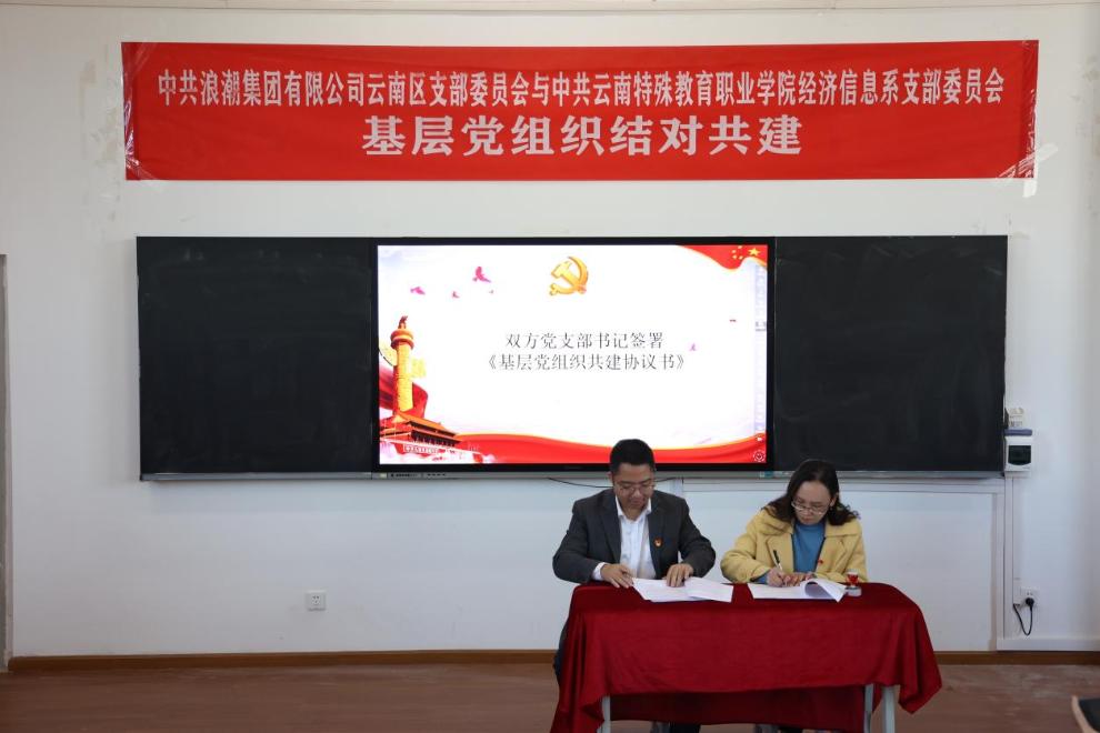 为进一步夯实党建工作基础,加强新时代基层党支部建设,充分发挥党组织的战斗堡垒作用,促进校地在党建资源联享、人才培养联动、实践活动联办、中心工作联抓等方面深度融合。2022年10月19日下午,中共浪潮集团有限公司云南区支部委员会与中共ac米兰官网中文网站经济信息系党支部举行了基层党组织结对共建签约授牌仪式暨经济信息系党支部10月主题党日活动。出席本次活动的有云南浪潮党支部书记王文武同志以及全体党员、经济信息系党支部书记高翠同志以及全体党员、入党积极分子以及部分学生代表,董亮院长作为特邀嘉宾出席活动。