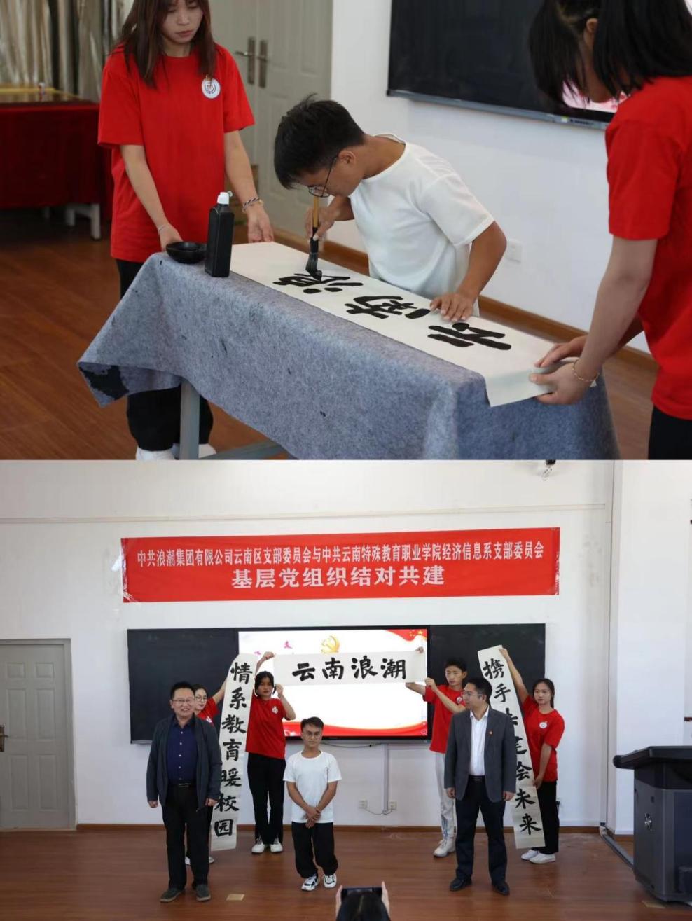 活动开始,双方党支部书记分别介绍了各自党支部的基本情况、党建活动特色、业务工作开展方向以及党建共建方式等内容,对深化校企基层的工作建设发展模式双方交流了经验。紧接着双方党支部书记签署《基层党组织共建协议书》、授结对共建牌,进行了云南浪潮对我系贫困学生“送温暖”的捐赠仪式,为表示感谢,我系受捐赠学生代表自发准备了手抄报、感谢信及现场书法展示回赠云南浪潮,并下定决心以后会努力学习,更好地回报学校、回报社会。接着进行了经济信息系举办的第二届“行路杯”假期实践活动和第八届东方财富杯全国大学生金融挑战赛的颁奖仪式。