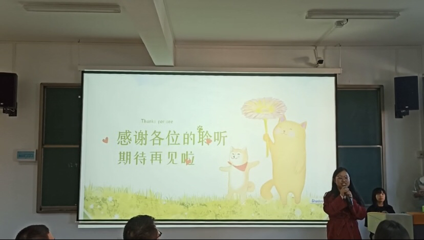 特教系史洋老师对本次会议做出了简单明了的点评:此次讲解ppt的过程中,存在一定的问题,读ppt较为明显,需要我们改进。在讲ppt的时候要有自己表述的方式,把想要讲的内容让同学更好地理解要点,发展这种形式会更好,希望我们同学有所体会。
