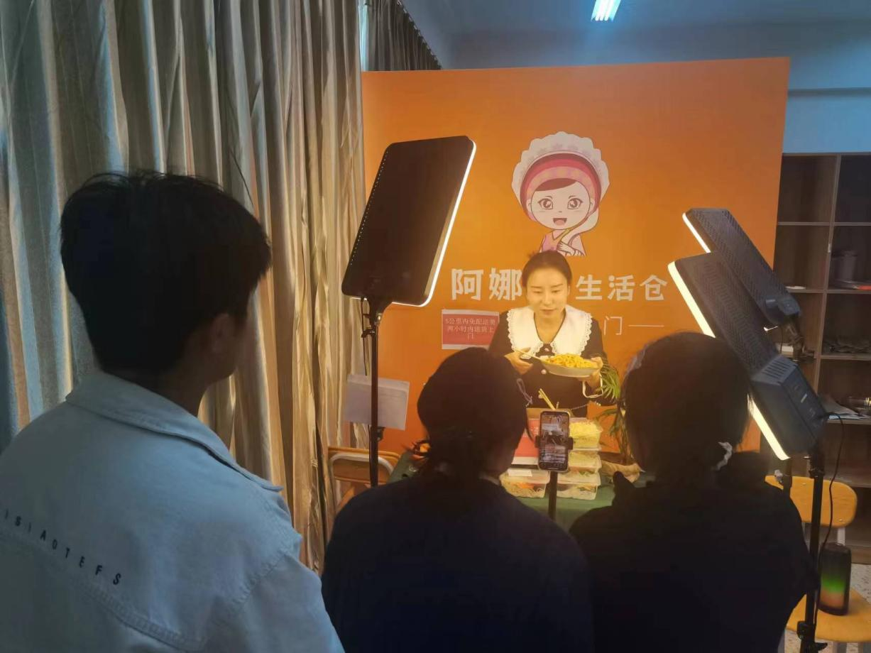 阿朴电商订单班目前共设有实训室3间,直播室5间,5个直播间的5个账号每周一至周六下午14:00——17:30分时段进行直播,企业导师对整个直播过程进行监督、指导。每场直播结束后,企业导师会带领直播团队全体成员进行复盘,一一指出在直播过程中各个岗位存在的问题,并进行现场指导,不断提升阿朴电商订单班同学的专业技能。历经十余天的理论学习及直播间的布置,于3月21日正式进入直播实训阶段。