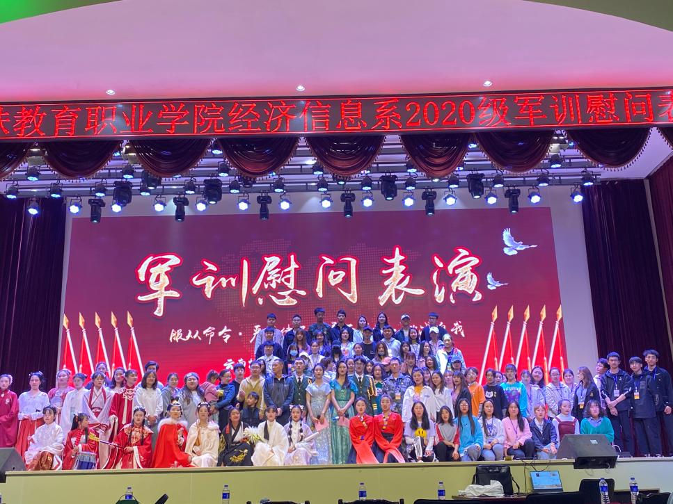 为丰富ac米兰2020级同学的军训生活,缓解军训时的紧张心情,营造一个欢快的军训氛围。2021年3月12日19时,由经济信息系团总支、学生会主办的以“青春正磨砺,热血铸军魂”为主题的军训慰问演出在学校礼堂隆重举行,纪检监察处处长郭俊、学生处副处长任彬、教务处副处长兼经济信息系主任高翠亲临现场观看了晚会,出席晚会的还有各系团总支代表、学生会代表及2019级特邀学生群体。活动参会师生共计800余人。