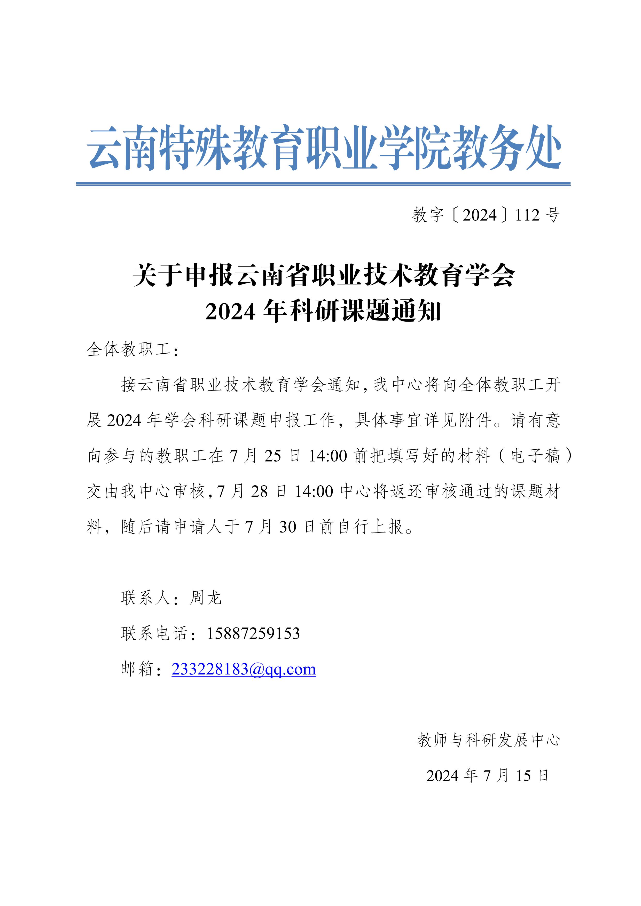 关于申报云南省职业技术教育学会2024年科研课题的通知