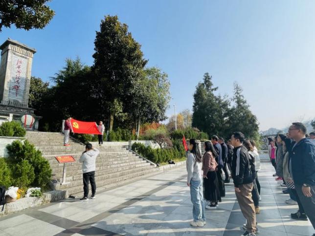 培训期间,学员们到达水田会议会址“花房子”,鸡鸣三省地标、大河滩庄子上会议旧址、红军途径的天险————“两合岩”进行实地参观。通过重走长征路、体验打糍粑、制作红军餐等形式,深深体会到当年红军长征的艰苦、革命斗争的艰难与残酷,进一步深刻认识到扎西会议在中国共产党史上的重要意义和重大贡献。在石安银副书记的带领下大家一起重温了入党誓词,向革命烈士敬献花圈,瞻仰红军烈士纪念碑。