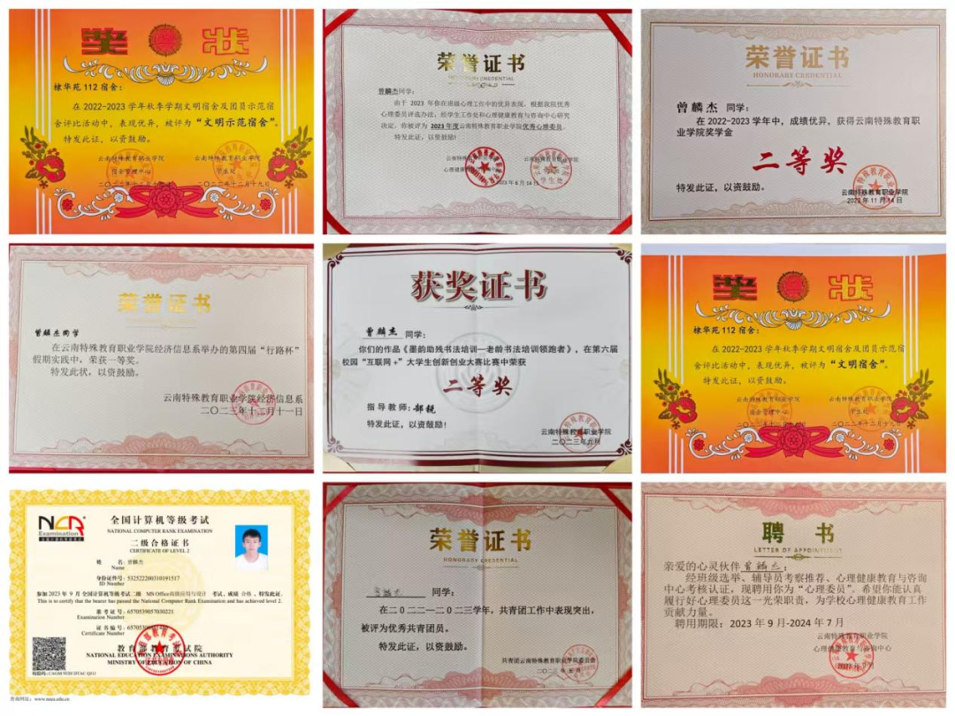 翻开他的成绩单,班级和专业排名均为第一,95.87分的平均分背后是曾麟杰日夜努力的褒奖。他还多次获得国家励志奖学金、学院奖学金及各类学科竞赛奖项,展现了卓越的学术能力和钻研精神。