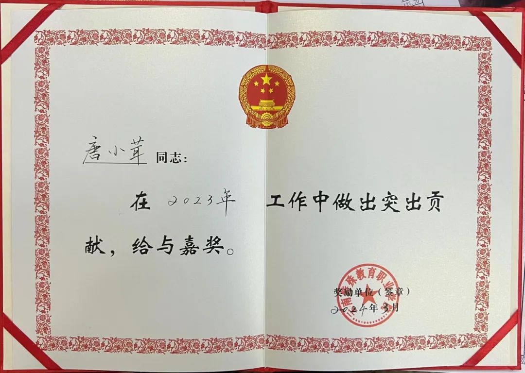 在指导学生发展过程中,唐老师悉心关怀学生,从岗位学习到实习实践,全程耐心指导,确保学生顺利完成任务,且未出现任何教学事故,助力学生在实践中成长成才。她关注学生素质提升,从辅导员视角,依据相关纲要落实“一站式”学生社区建设与心理健康摸排预警工作,助力学生健康成长。积极响应以赛促建,实现本专业学生全员双创,同时确保学生体质健康标准测试合格率达96%。担任辅导员期间,认真落实学生工作处安排,扎实开展学生管理与思想政治教育工作,出色完成各项任务,以全方位的努力书写着教育事业的精彩篇章。带领所辖班级积极创建优良学风班,严谨开展评审活动,营造浓厚学习氛围。对违纪学生教育处置及时有力,维护校规校纪尊严。组织班级参与“文明礼貌月”“学雷锋”等系列活动,全班赴敬老院志愿服务,打造优质德育实践阵地。