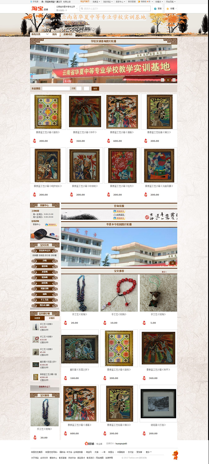主要业绩:建成淘宝网店一个,主要销售工艺美术实训基地的聋哑学生手工艺作品,下一步打算加入玉石加工工艺品等产品的网络营销和结合淘宝的电子商务实作培训等业务,拟达到年平均培训学员100人次。