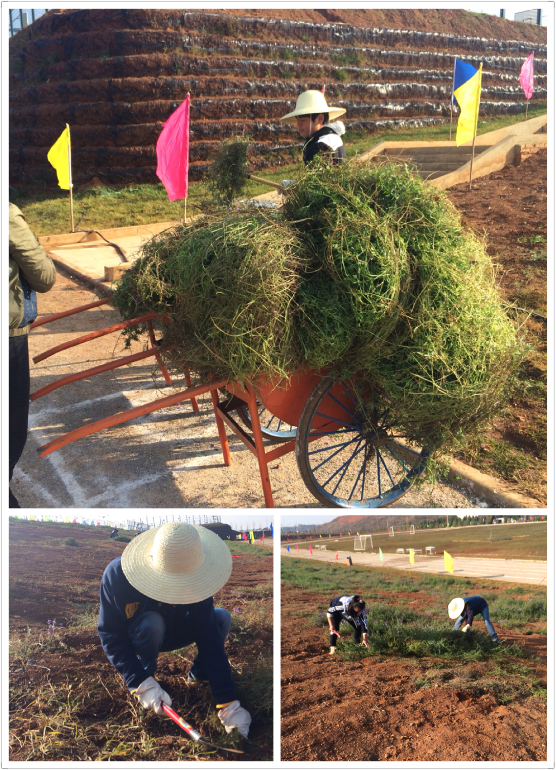 图为 学生在劳动素养课除草