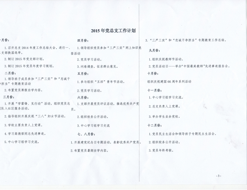 2015年党总支工作计划