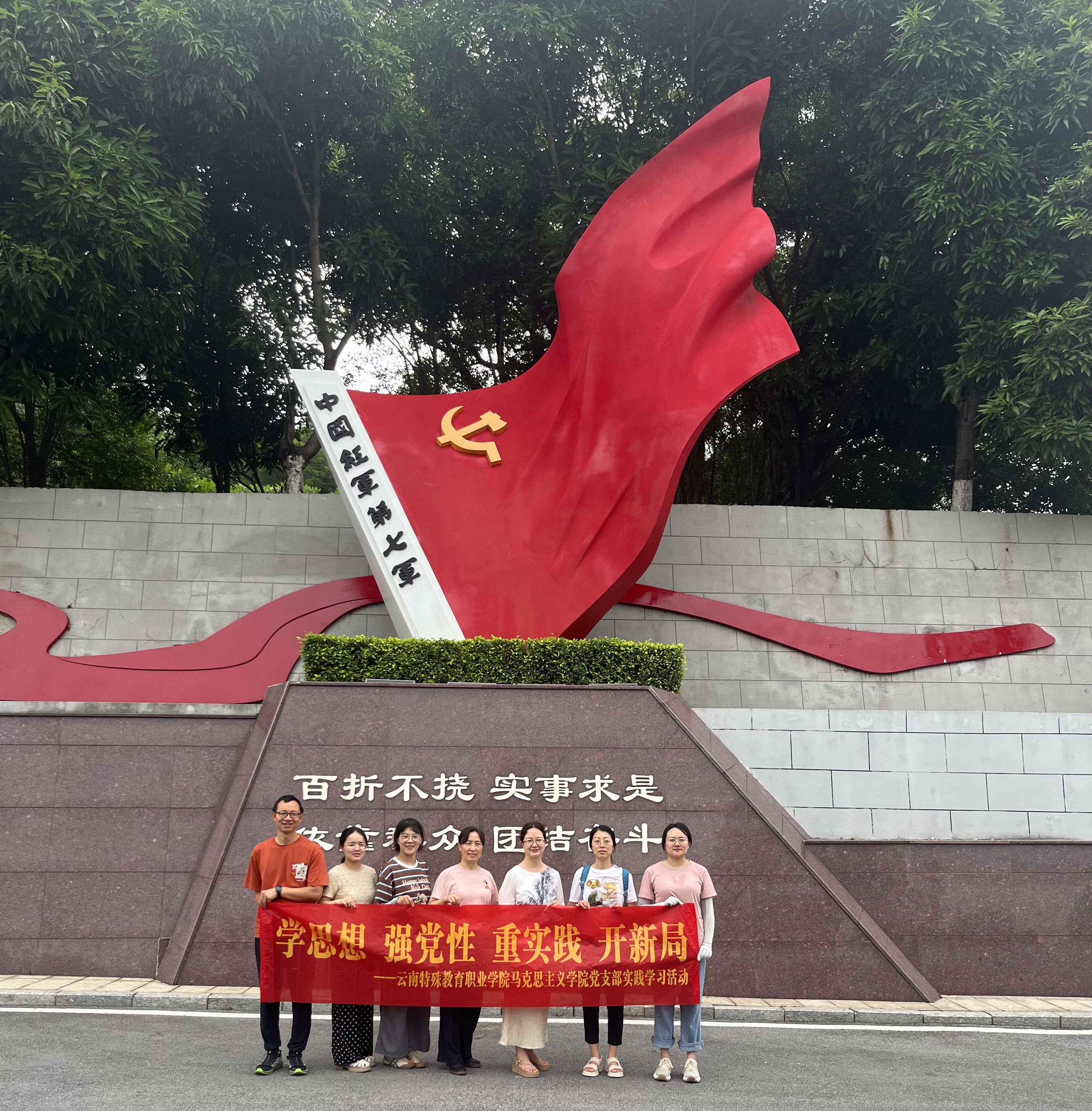 为深入学习贯彻习近平总书记关于党纪学习教育的重要讲话和重要指示精神,传承红色基因、坚守纪律底线,用红色文化等鲜活资源引导党员把学习热情转化为学思践悟铸忠诚,凝心聚力担使命的强大动力,2024年6月15日至16日,马克思主义学院党支部赴百色组织开展党纪学习教育暨红色研学主题活动。