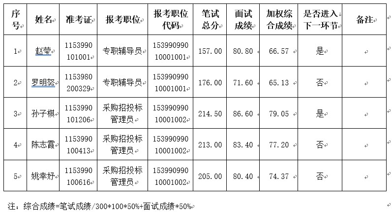 根据《云南省事业单位公开招聘工作人员办法》(云人社发〔2016〕182号)和《ac米兰官网中文网站2022年公开招聘工作人员公告》有关规定,经笔试、面试,现将综合成绩公示如下: