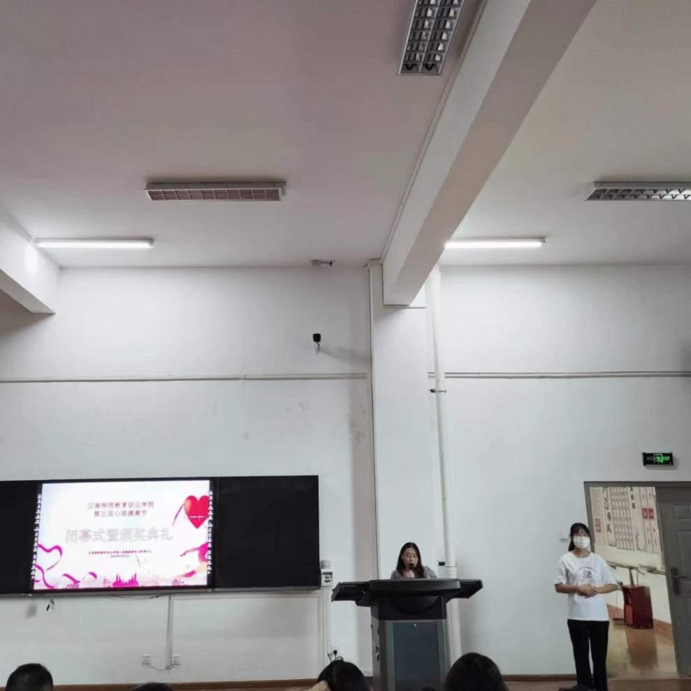 6月22日下午,由ac米兰官网中文网站心理健康教育与咨询中心主办、各系及学院星语心愿社承办的第五届心理健康节闭幕式暨颁奖典礼在玉璋楼408报告厅如期举行。学院党委副书记石红,学生处处长朱云佳,副处长罗宝艳、陶柯妤,特殊教育与公共服务系副书记尹文静、经济信息系副书记王小川,艺术系副书记张黎黎出席闭幕式。闭幕式由心理健康教育与咨询中心教师欧光佑主持,各系部教学秘书、获奖学生及其指导教师,各班心理委员代表近80人参加。