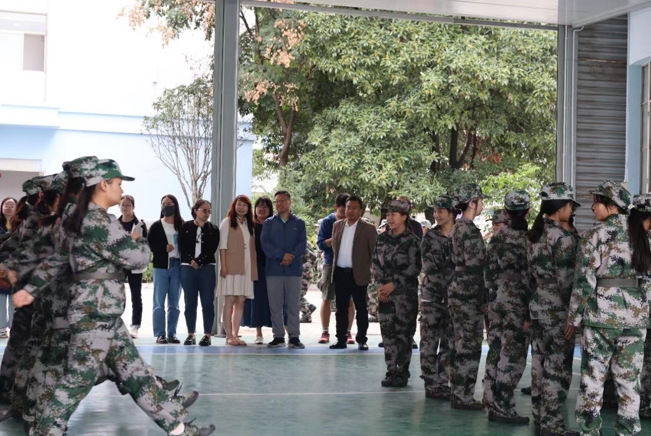 截至目前,已开展了10天的军训生活。“稍息,立正!”学生们在教官一声声有力的口令下,依次进行了站军姿、停止间转法、行进、齐步走、立定、蹲下起立等基础动作练习。虽然连日的阴雨天气使得场地较为湿滑,但他们始终保持着积极向上的态度和顽强拼搏的精神,身姿挺拔、精神抖擞,展现出了青春活力和蓬勃朝气。军训期间,学校党委副书记石安银深入学生军训现场,看望参加正在军训的2023级新生,慰问承训的教官。