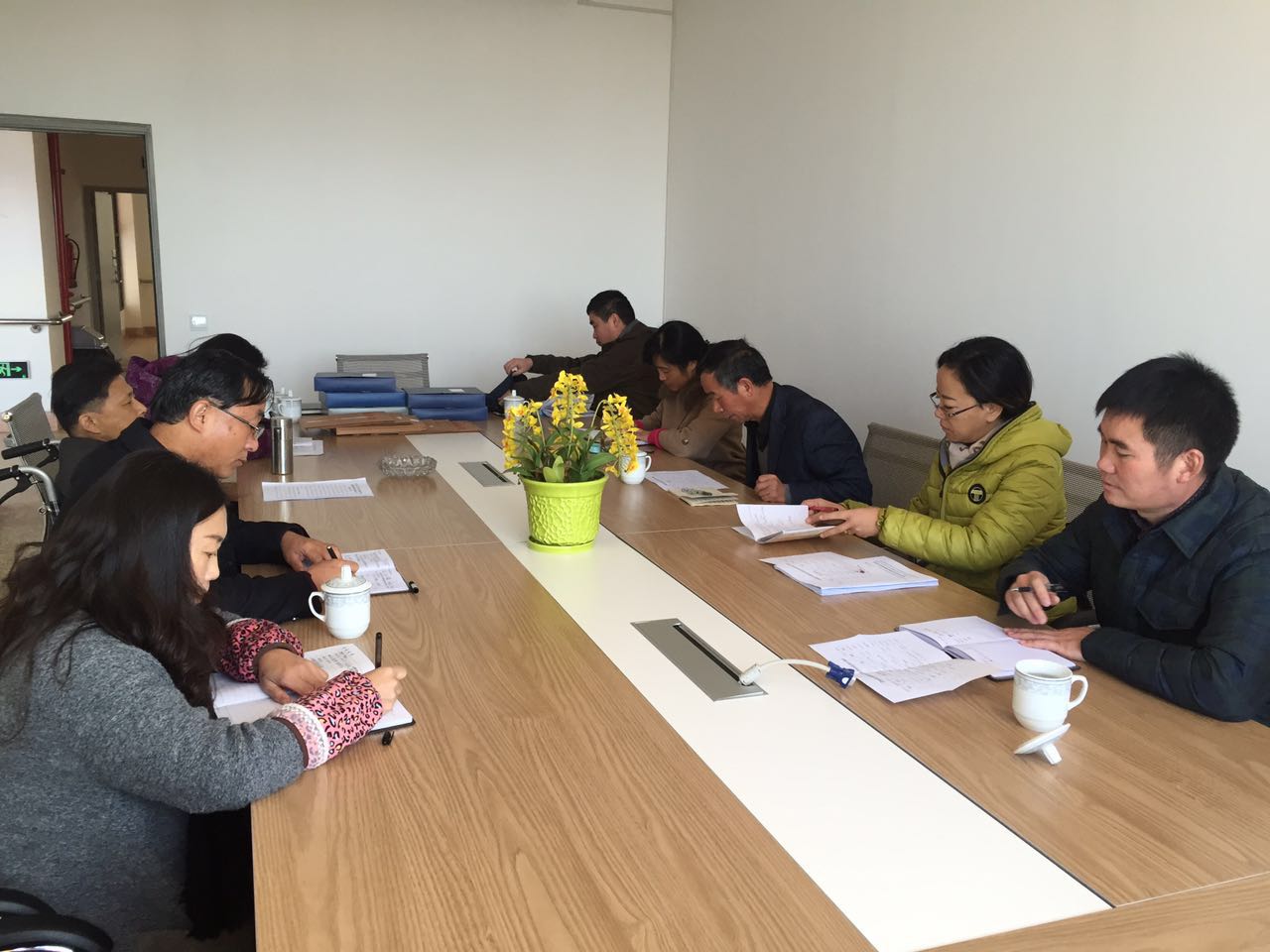 检查汇报会在小会议室举行,会议由刘跃洲组长主持,济世之家家长李鹥同志、副校长石红同志、副家长俞志平同志参加了会议。