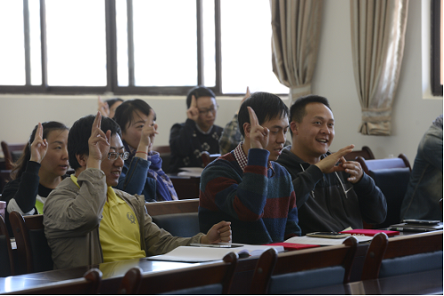 2016年3月23日,手语支持中心安排了一名手语骨干教师在大会前十分钟培训十个句子。会前,骨干教师都精心准备了所授内容。