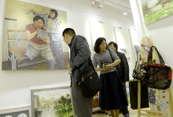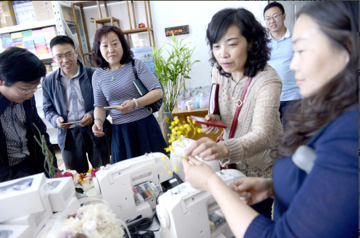 图为来访嘉宾参观工艺美术孵化园