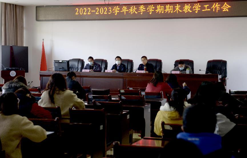 为进一步落实2022-2023学年秋季学期教学工作,回顾2022年教育教学情况,并对2023年教学工作安排部署,学院于2023年1月4日上午9点采取线上线下形式,分别在诵弦楼6楼大会议室和腾讯会议同步召开了2022-2023学年秋季学期期末教学工作会。全院教师出席会议,董亮院长、李永芳副院长、教务处颜蕉生处长、王立宇副处长做相关讲话。本次会议由副院长李永芳同志主持。