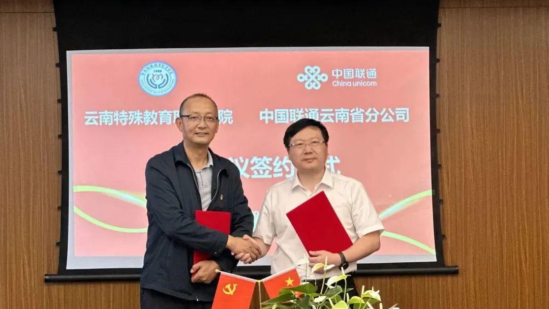 孙继先书记对双方在校企合作过程中,云南联通的重视程度、执行力和响应速度给予了高度赞扬和评价,表示对未来双方的合作充满信心和期待。他指出,希望在未来双方校企合作过程中,云南联通能够结合自身的产业领域,把办学能力、资源、凛赋、师资的优势结合起来,与校方一起形成合力,秉承“一展望一规划”、“一个项目一个专业”的原则,深入推进“产教融合、校企合作”,共同谱写助力中国现代教育高质量发展新篇章。同时,对校方残障特殊群体学生,我们双方要共同做好深度研判,从人才培养、课程资源设置、学生就业领域出发做好规划,以此成就他们的人生,让他们变为建设者和接班人,变为自实其力的劳动者,未来成为奔向新时代社会主义中国的残疾人。