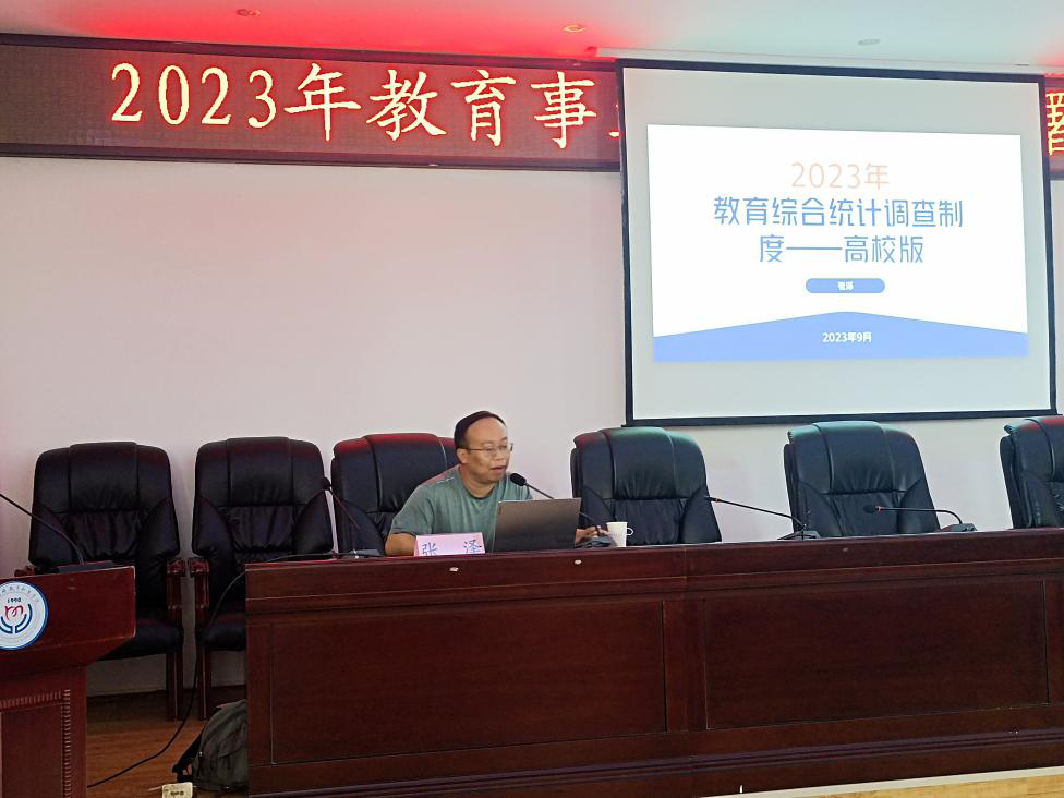 2023年9月21日,学校在大会议室召开了2023年教育事业统计工作部署暨培训会,此次培训邀请省教育厅教育事业统计专家张泽为ac米兰相关人员作培训,石红副校长、各部门负责人及数据员参加会议。