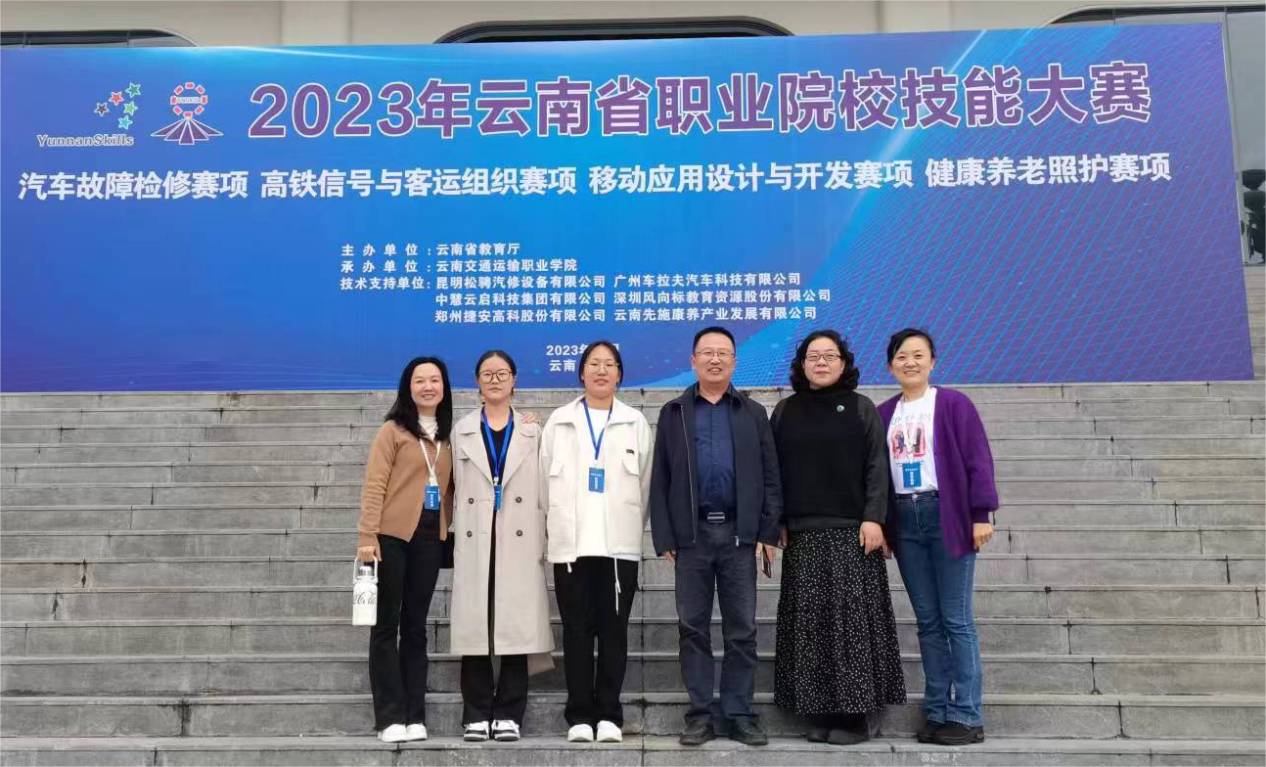 特殊教育与公共服务系积极响应大赛号召,于2023年10月8日由系主任邓迎带领指导老师和参赛学生前往安宁市云南交通运输职业学院,完成2023年云南省职业院校技能大赛的选手报到工作。