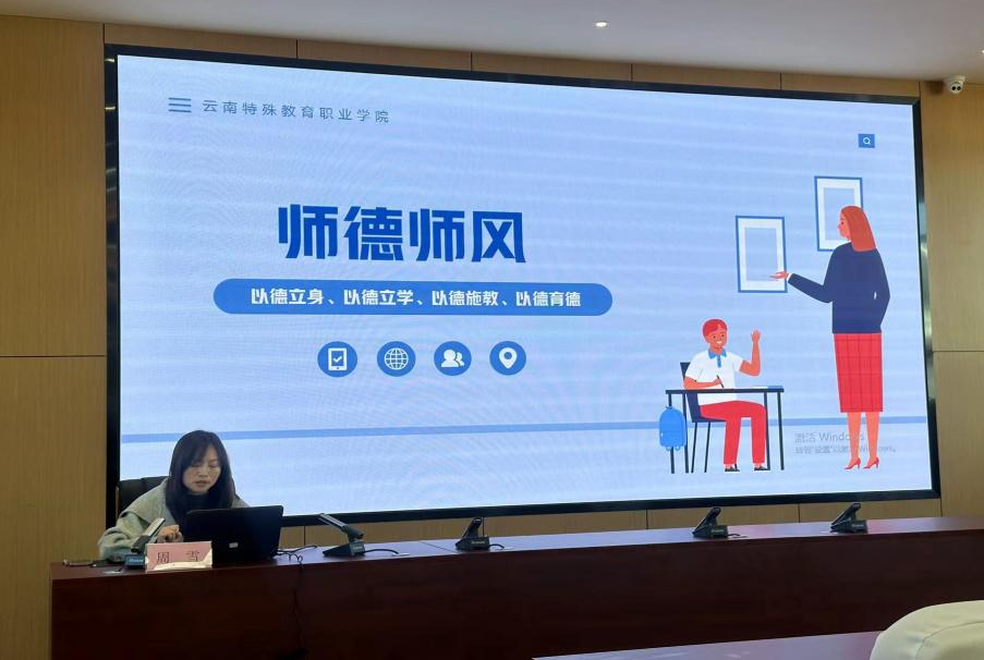 人事处处长周雪通报了教育系统违法违纪案例,要求全体教师清醒认识教育系统师德师风建设面临的严峻形势,主动从反面典型中汲取深刻教训,要认真做好本职工作,统一思想认识,进一步加强师德修养,贯彻师德规范准则,努力鞭策自己,立足本职岗位,用行动来塑造教师高尚的师德形象,为教育事业的发展做出自己应有的贡献。