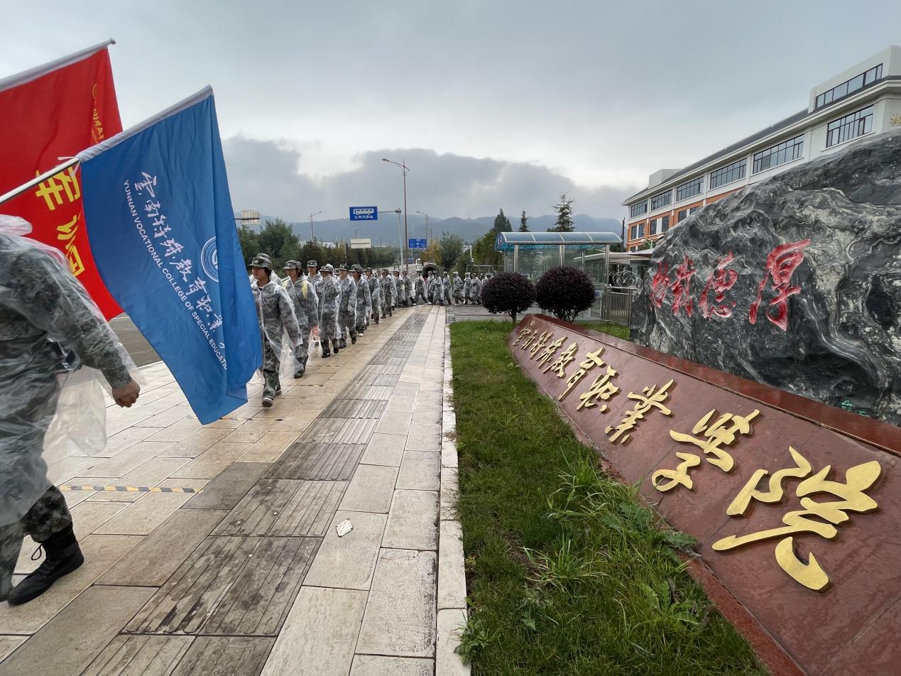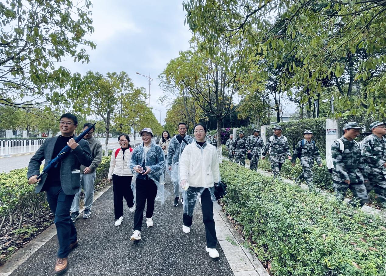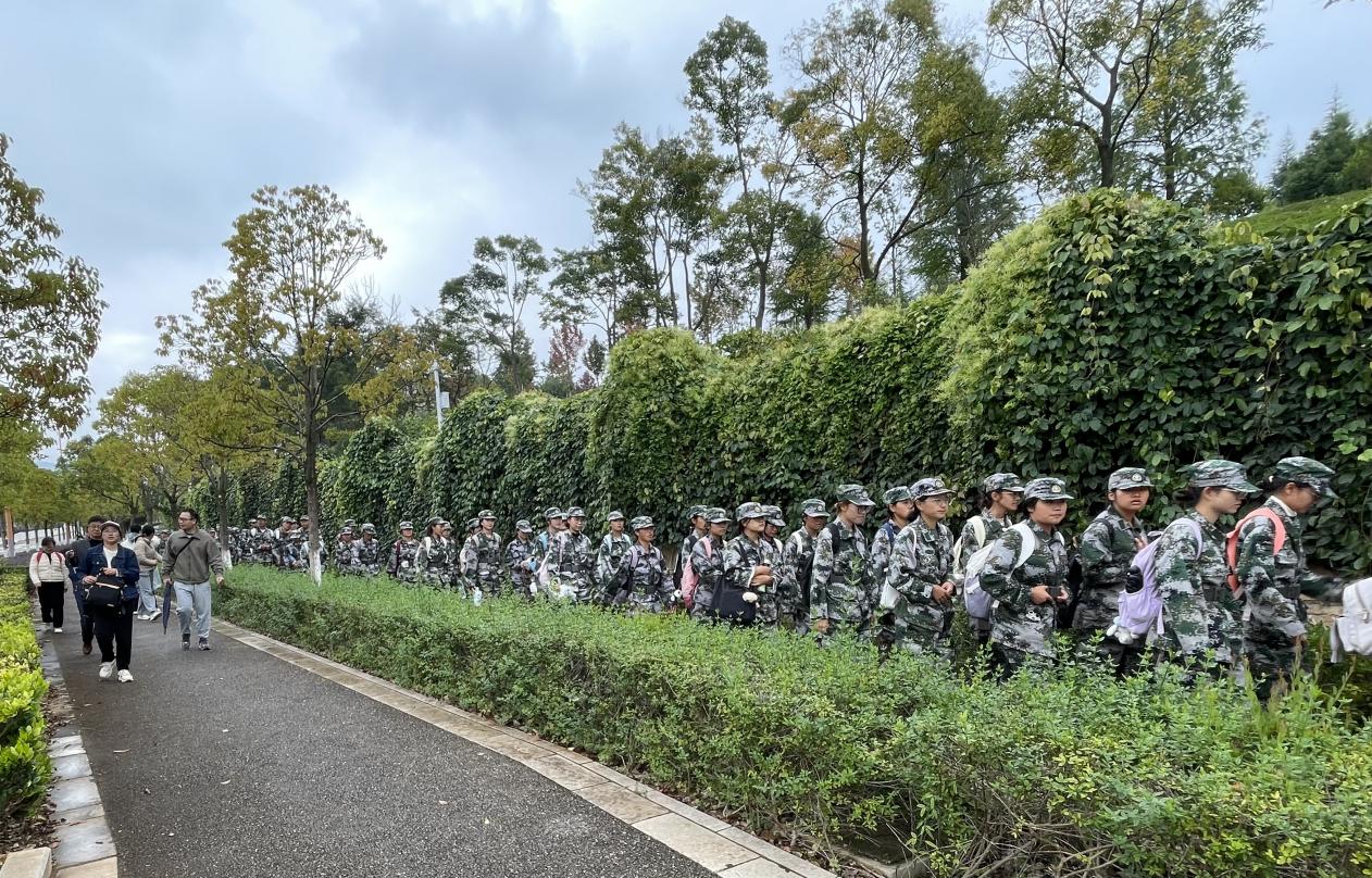 此次拉练由校本部沿万峰路行军至万溪冲村(呈贡区户外自行车赛道)行进,随后返回校本部。全程共有410余名学生参加。