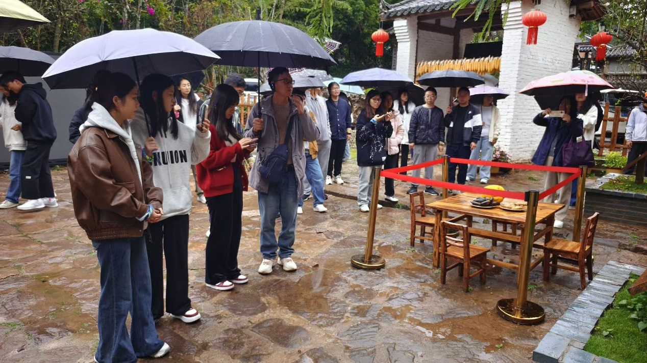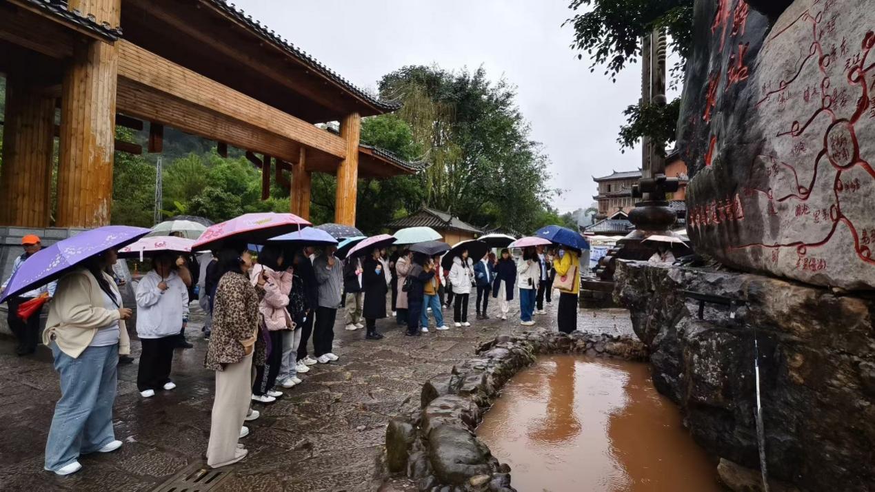 随后,在那柯里茶马古道小镇,师生们实地考察了古代商道对民族交流与经济发展的推动作用,并体验了普洱茶的制作过程。大家走进荣发马店,参观了习近平总书记视察时曾用过的桌子,聆听了习近平总书记关于民族团结工作的重要指示。通过考察,不仅丰富了师生的历史文化知识,也使大家更加深刻地理解了茶马古道在促进民族团结和经济发展方面的重要作用。