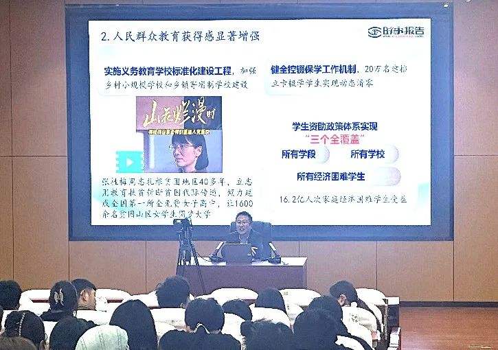 孙继先深刻阐述了将人口大国转变为人力资源大国这一核心命题,集中围绕《教育强国建设规划纲要(2024-2025年)》提出的背景,从教育的三大属性入手,结合建设教育强国的重要性,让同学们深刻领悟教育强国建设的思想主线,激励同学们努力学习,不断奋进。