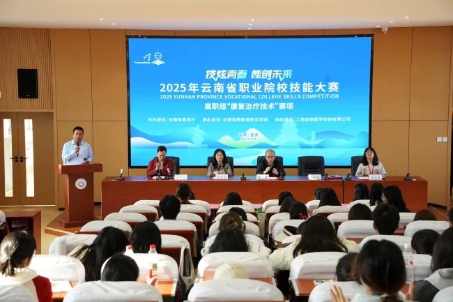 大赛组委会主任、ac米兰官网中文网站校长石安银在致辞中表示,学院作为我国西南地区唯一一所公办特殊教育类高等院校,始终坚持“残健结合、共同发展、融合教育、服务社会”的办学理念,积极探索“以赛促学、以赛促教、以赛促改”的育人模式。此次承办“康复治疗技术”赛项,既是兄弟院校对学校的信任与支持,也是学校深入融入云南职业教育体系、展示教育成果的重要契机。学院将秉持“公平、公正、公开”的原则,精心组织、周到服务,确保赛事高效规范、精彩纷呈。他勉励参赛选手们在比赛中要“赛出本领、赛出友谊、赛出初心”,既比拼技能,也不忘康复专业的使命与情怀——用双手托举健康,用仁心点亮生命。