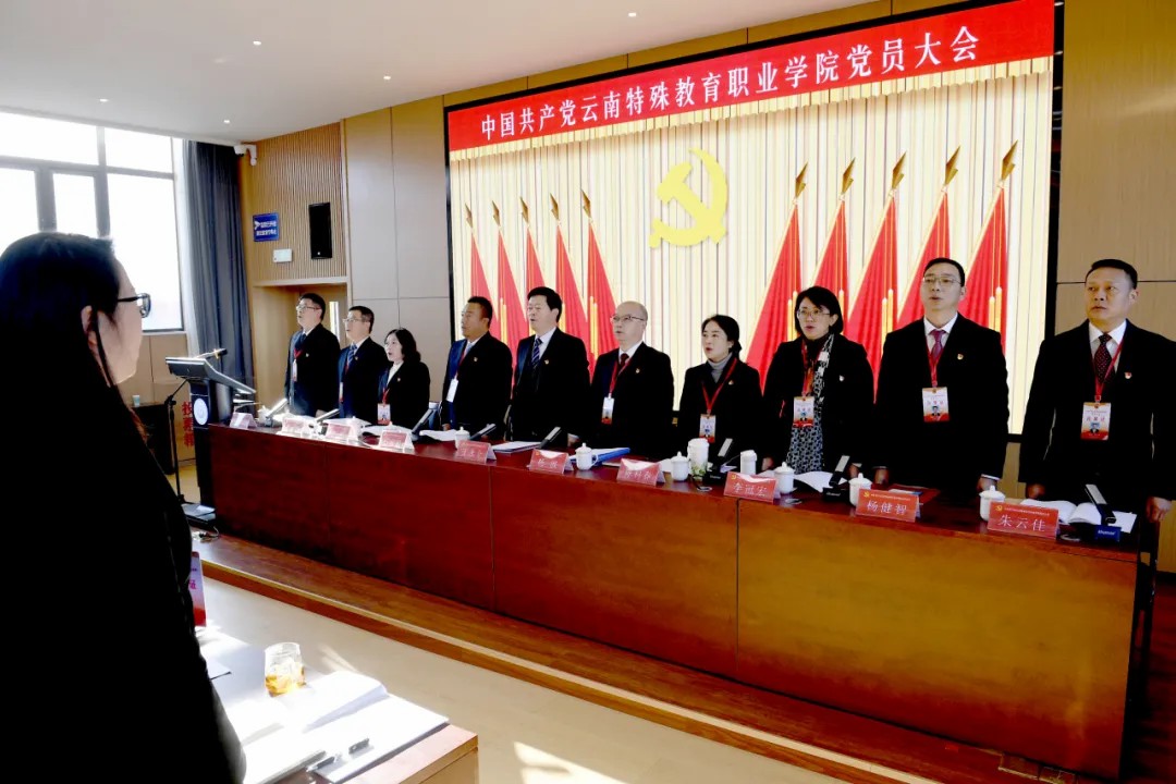 云南省教育厅副厅长、党组成员、省委教育工委委员王永全同志到会指导并讲话。他代表省委教育工委、省教育厅对大会的胜利召开表示热烈祝贺,并向全校党员同志及广大师生员工致以诚挚问候。王永全同志充分肯定了学校党委近年来的工作成效:在全面加强党的领导、构建适宜残疾人发展的职业教育专业体系、持续改善办学条件、增强教职工获得感幸福感等方面取得显著成绩。他指出,此次党员大会是学校在关键发展阶段召开的会议,对统一思想、凝聚力量、开创学校高质量发展新局面具有重大而深远的意义。针对大会召开及学校未来发展,王永全同志提出明确要求:一是全体党员要提高政治站位,认真履职尽责,严守会议纪律,共同确保大会各项任务圆满完成;二是新一届党委和纪委领导班子要勇担特殊教育使命,坚守办学初心、坚持守正创新、勇于锐意进取,朝着“全省领头、西南领先、国内一流的高水平高等特殊教育职业院校”目标奋勇前进,在教育强国、教育强省建设中谱写特殊教育新篇章,为中国式现代化云南篇章作出新的更大贡献。