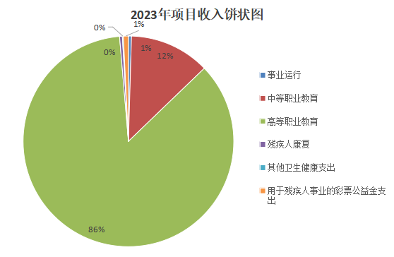 2023年度用于保障ac米兰官网中文网站单位为完成特定的行政工作任务或事业发展目标,用于专项业务工作的经费支出2595.51万元。其中:基本建设类项目支出0.00万元。具体项目开支及开展工作情况:1.事业运行支出12万元,占项目支出0.46%;2.中等职业教育支出320.31万元,占项目支出12.34%;3.高等职业教育2228.27万元,占项目支出85.85%;4.残疾人康复支出11万元,占项目支出0.42%;5.其他卫生健康支出4万元,占项目支出0.15%;6.用于残疾人事业的彩票公益金支出19.93万元,占项目支出0.77%。