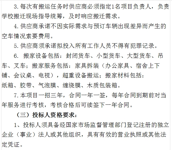 1、项目名称:ac米兰官网中文网站选聘搬家公司项目(二次招标)
