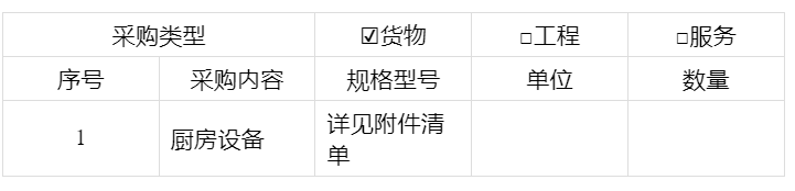 项目名称:厨房设备采购项目