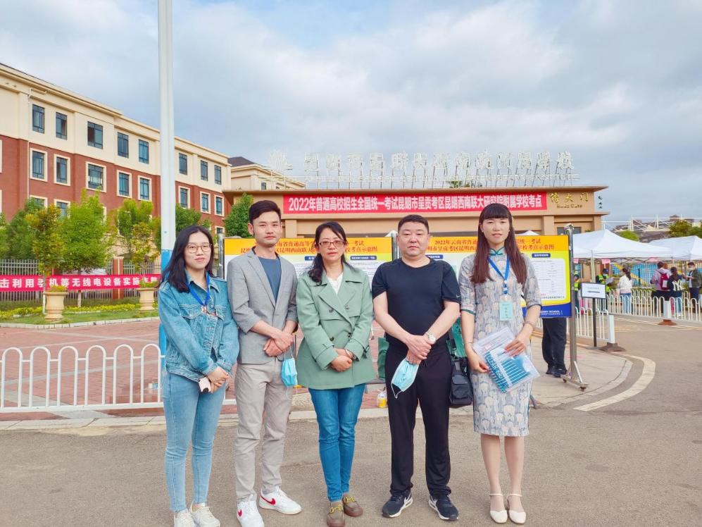 高考前夕,为了保证高考顺利进行,招生与对外发展处详细地制定了送考工作方案,以确保学生顺利进入考场。此次高考ac米兰共有21名学生参加考试,考点集中在西南联大研究院附属学校。6月7日早上开考前,学院副院长李冠宏一行到考点为高考学生加油打气。高考期间,徐艳蓉、肖然负责所有考生的全面管理工作,组织考生以考场为单位考前、考后的往返集中,时时关注考生动态,对所有考生进行健康状况的监测,做好考生的思想工作,注重考生心理健康,督导考生按时学习、赴考、就餐、休息等,做好相关方面的沟通、协调并及时处理考试期间出现的突发事件,确保考生安全高考。