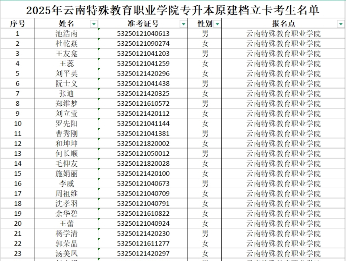 2025年ac米兰官网中文网站专升本原建档立卡考生名单