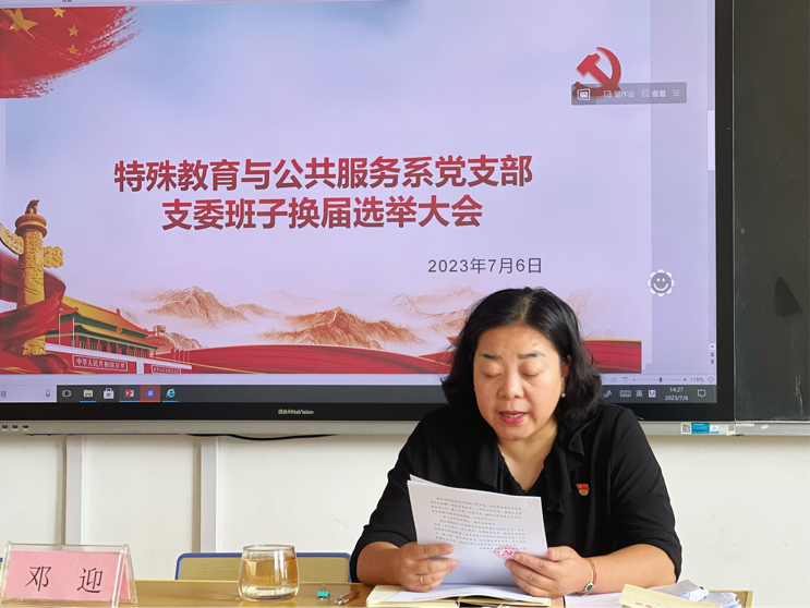 根据中共ac米兰官网中文网站委员会关于做好党支部 换届选举工作的通知要求,特殊教育与公共服务系党支部于2023年7月6日下午在玉璋楼509召开了支委班子换届选举大会。