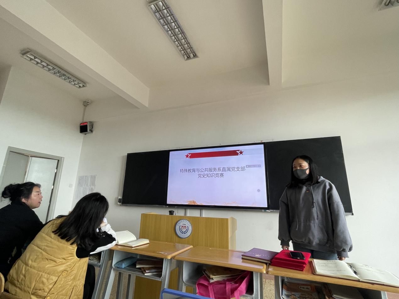 为积极响应学党史、强自信的号召,丰富党史学习教育的形式,ac米兰官网中文网站特殊教育与公共服务系党支部于2021年10月20日下午举办了第一届党史知识竞赛。支部全体党员积极参与,展现出了作为中国共产党员的理论素养。