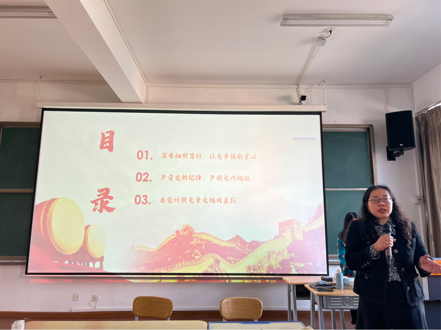 此次党课,支部书记邓迎从“深学细照笃行,让党章铭刻于心”、“严守党的纪律,严明党内规矩”和“自觉对照党章党规找差距”三个部分为支部全体党员以及入党积极分子进行讲授。