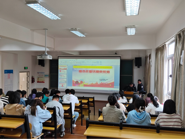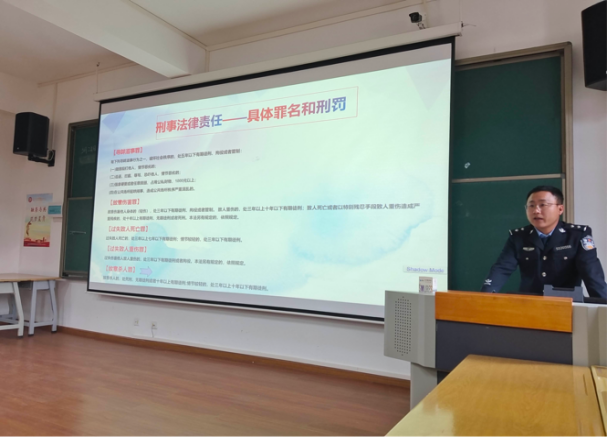 支部共建交流的同时,嵩明监狱一监区警察吴玉涛在玉璋楼309阶梯教室为在校班级学生代表进行普法宣传教育,让大家从不同的角度深入了解学法、懂法、用法的重要意义。