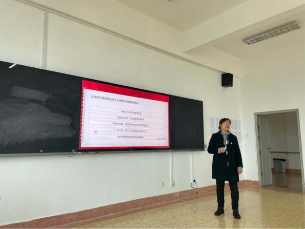 刘安惠老师从云南地理区位、习近平总书记两次考察云南的重要讲话精神为突破口,回顾了两次考察中的金句,重点讲述了民族团结的重要性与必要性。全面建成小康社会,一个民族都不能少。独龙族“一步跨千年”,2018年实现全面脱贫;司莫拉佤族村落在国家精准扶贫政策之下,顺利脱贫。民族团结是各民族共同繁荣的前提,是祖国统一的基础,因此,必须维护民族团结。