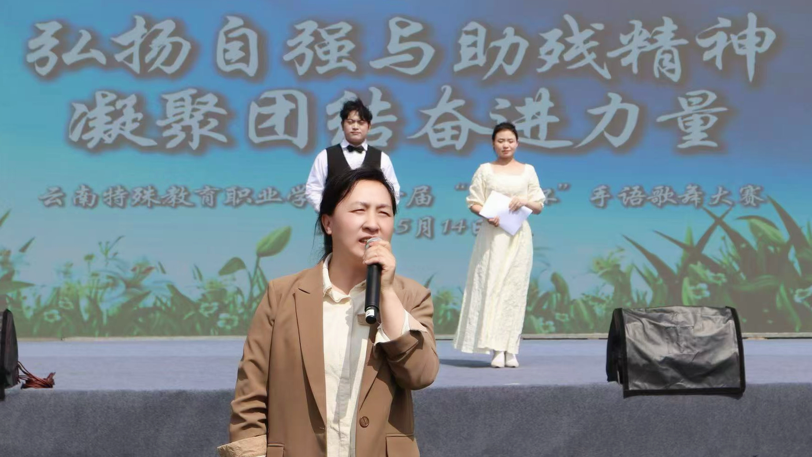2025年5月14日下午,ac米兰官网中文网站呈贡校区操场上暖意融融、掌声雷动,首届“特职杯”手语歌舞大赛在此精彩上演。本次大赛以“弘扬自强与助残精神,凝聚团结奋进力量”为主题,设置专业组、业余组、听障组三个组别,吸引了来自不同专业的九支队伍参赛,用指尖演绎出动人的生命乐章。