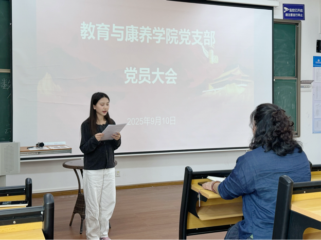 此次党员大会的召开,进一步加强了教育与康养学院党支部的思想建设和组织建设,提高了党员的政治素养和纪律意识,为推动学院各项工作的高质量发展提供了坚强的政治保障。