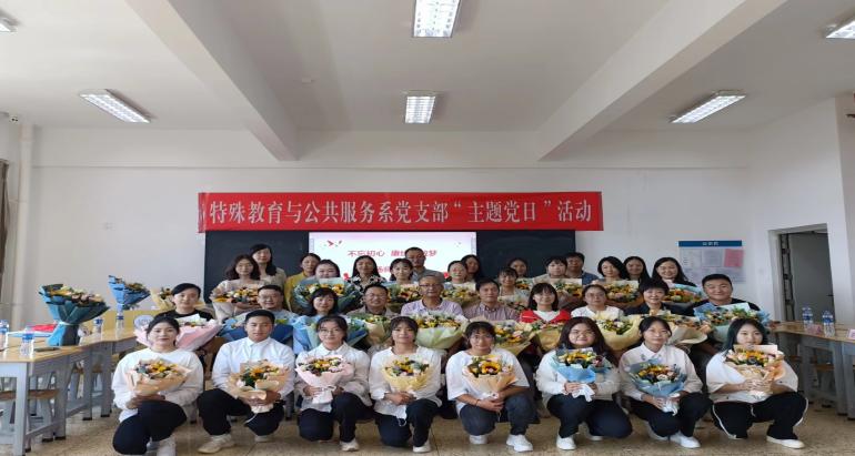 春播桃李三千圃,秋来硕果满神州!在这丹桂飘香的日子里,为进一步弘扬尊师爱生的良好风尚,激励全系教师开拓创新、积极进取,增强教师的责任感和使命感,特殊教育与公共服务系于第38个教师节来临之际,在玉璋楼503隆重举行主题为“不忘初心 赓续特教梦 弘扬师德师风”的教师节暨系部党支部主题党日活动,学院党委书记孙继先、学院院长董亮同志莅临活动现场,与我系师生一同庆祝佳节。