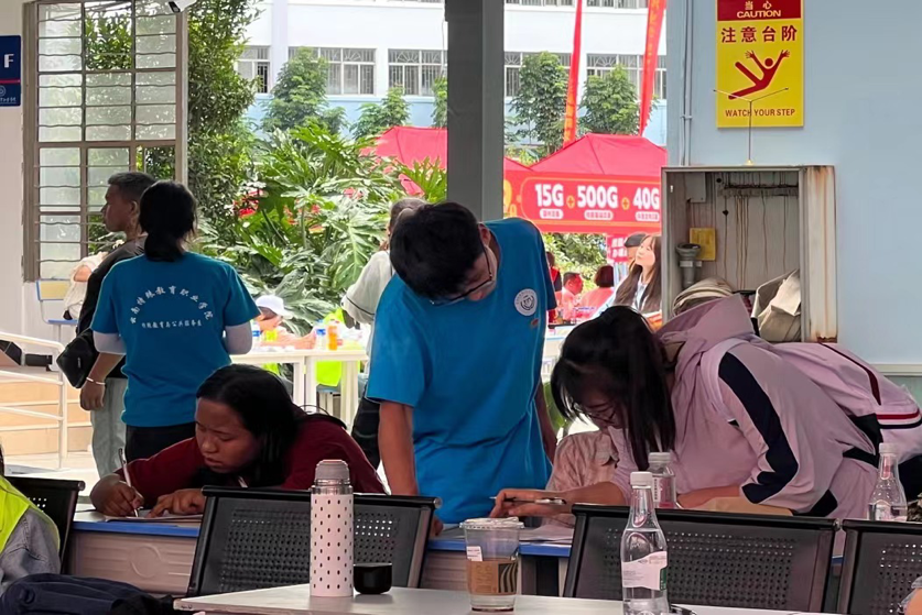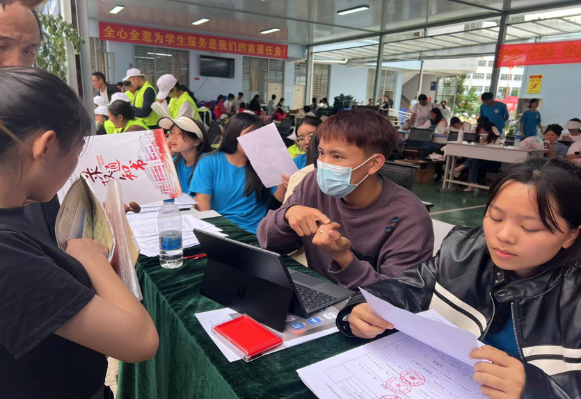 清晨的阳光洒落在校园每个角落,红色的迎新横幅寄托着对新生的祝福和期望。相关的教师、工作人员和学生志愿者们,早早准备好了报到事宜,在各自的岗位上静候新生的到来。志愿者们为新同学带路、搬运行李、讲解注意事项;老师们落实好报到注册工作;现场工作人员认真组织协调,保证了迎新工作的顺利开展。