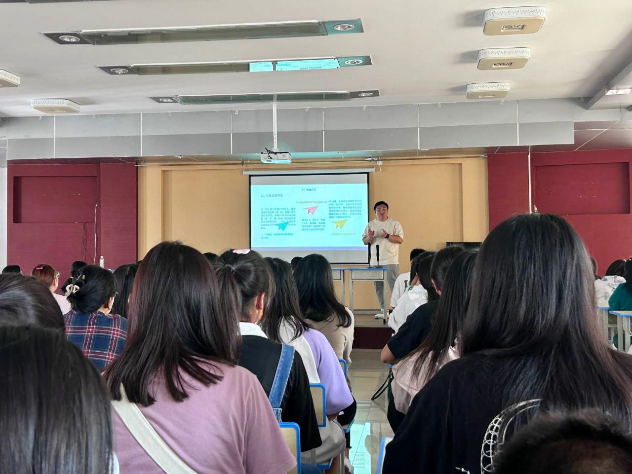 各位老师从新生们对于专业的刻板印象入手,向大家介绍了各专业的实际情况,并从专业发展、师资力量、培养框架、实习基地、行业考证、就业去向等各方面对专业展开细致介绍,同时鼓励同学们做好谋划,培养专业兴趣,加强自身学习。