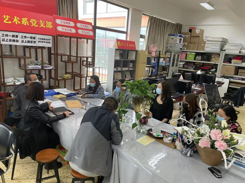 自党史学习教育活动开展以来,艺术系党支部充分发挥基层党组织战斗堡垒作用和党员先锋模范作用,解决涉及师生切身利益的“急难愁盼”问题。当前疫情形势严峻,为确保艺术系2019级学生能按时参加专升本考试,2022年3月23日,艺术系党支部召开党员会议安排相关工作事宜。