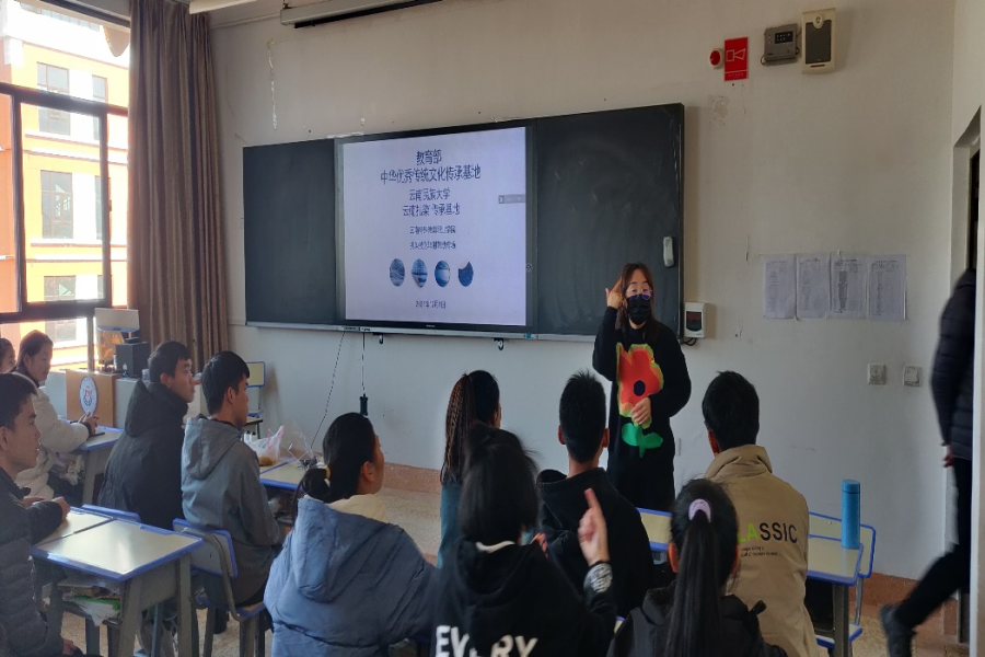 艺术系党支部努力提升支部服务能力,结合系部业务积极推进支部服务范围,11月中旬艺术系党支部收到云南民族大学艺术学院的咨询,需要做一次为植物染料扎染的辐射活动,支部积极推进落实,安排了三个听力言语障碍的大中专班支持本次辐射活动。2021年12月1日,教育部中华优秀传统文化传承基地云南民族大学“云南扎染”传承基地的师生一行12人到校开展宣讲和植染实践,支部全体党员、团总支成员以及部分感兴趣的系部师生前来参与,支部还邀请了行政第一党支部第一党小组成员参与,活动分三个教室同步开展,每个教室均安排了党员教师全程手语翻译,共158人参与。