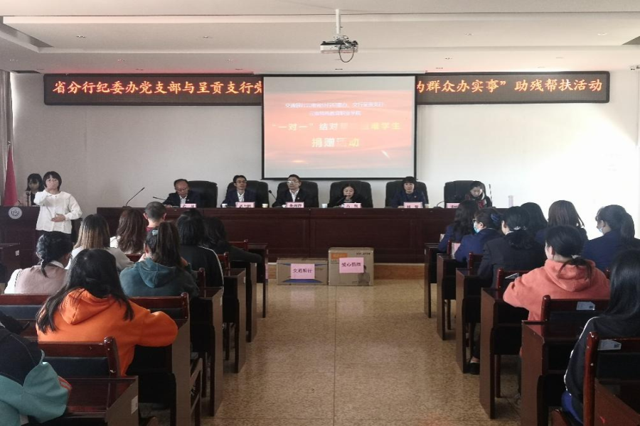 活动中,交通银行云南省分行与呈贡支行的领导们向我系T20工艺美术三班听障学生们捐赠了文化、体育用品,并进行“一对一”结对助残帮扶,资助品学兼优的学生。交通银行云南省分行纪委书记朱寿海表示,此次助残活动在于弘扬中华民族传统美德,倡导“平等、参与、共享”的价值理念,他强调,希望我系学生能克服困难,学有所成,早日成为新时代中国特色社会主义伟大事业的建设者。