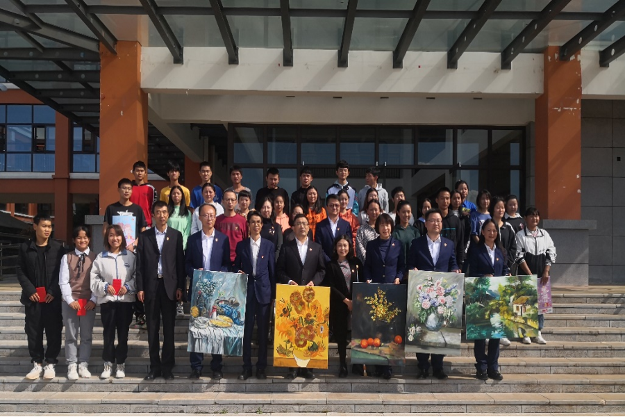为了感谢领导们的帮助,听障学生们向其赠送自己亲手绘制的油画作品,领导们纷纷称赞作品惟妙惟肖,现场气氛达到了高潮。